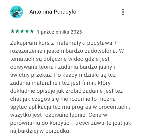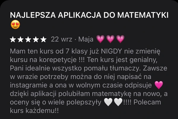 Dlatego stworzyliśmy aplikację z kursem z matematyki, która skupia się na słabych stronach, jest dostępna zawsze pod ręką oraz daje możliwość zdania matury, dostania się do wymarzonego liceum czy uczelni.