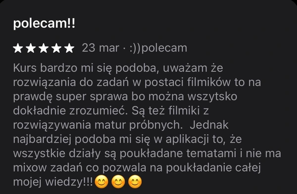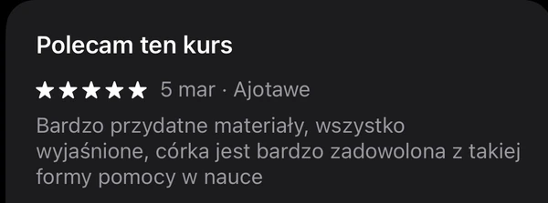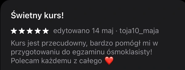 Nasz kurs od zera tłumaczy wszystkie zagadnienia i pozwala uczniowi na zrozumienie materiału z każdej klasy szkoły ponadpodstawowej oraz podstawowej.