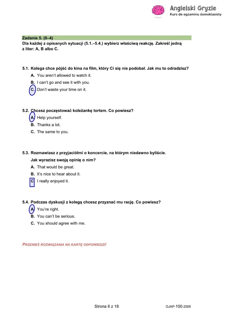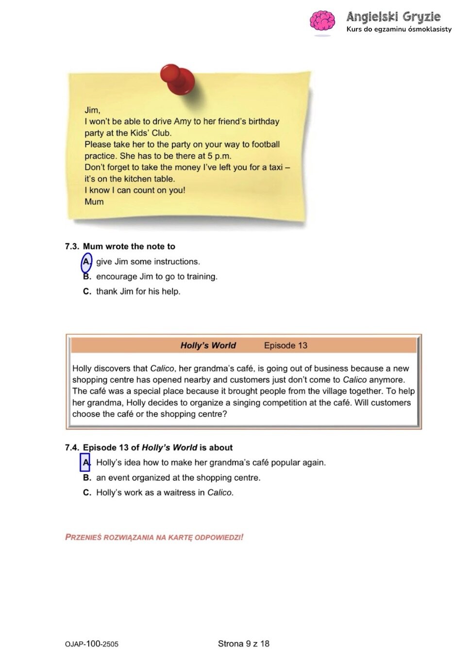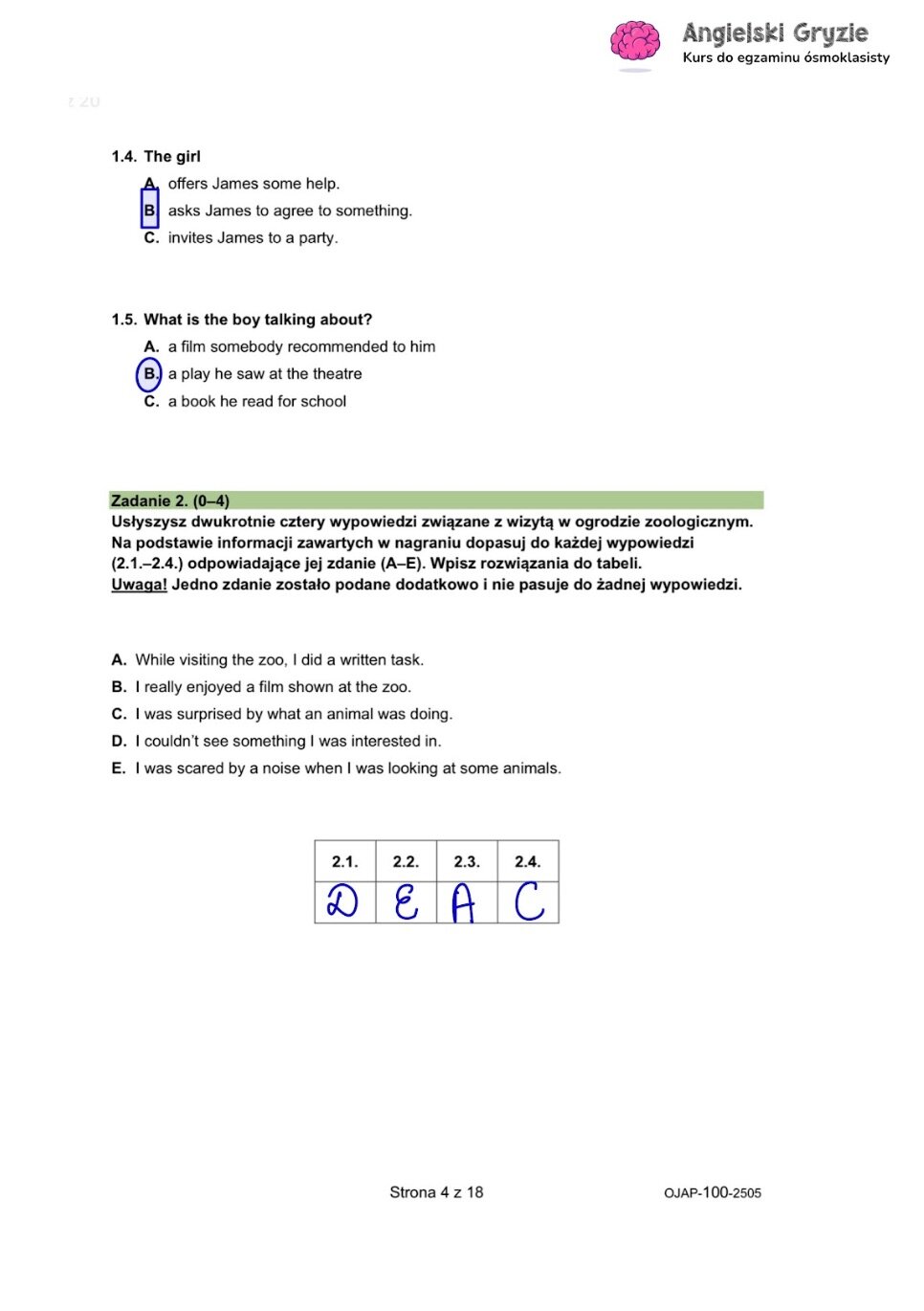 Egzamin ósmoklasisty z języka angielskiego już za Wami! 😮💨 Jeśli chcecie szybko sprawdzić swoje odpowiedzi, to mamy dla Was dobrą wiadomość. Rozwiązania wszystkich zadań z języka angielskiego znajdziecie poniżej!