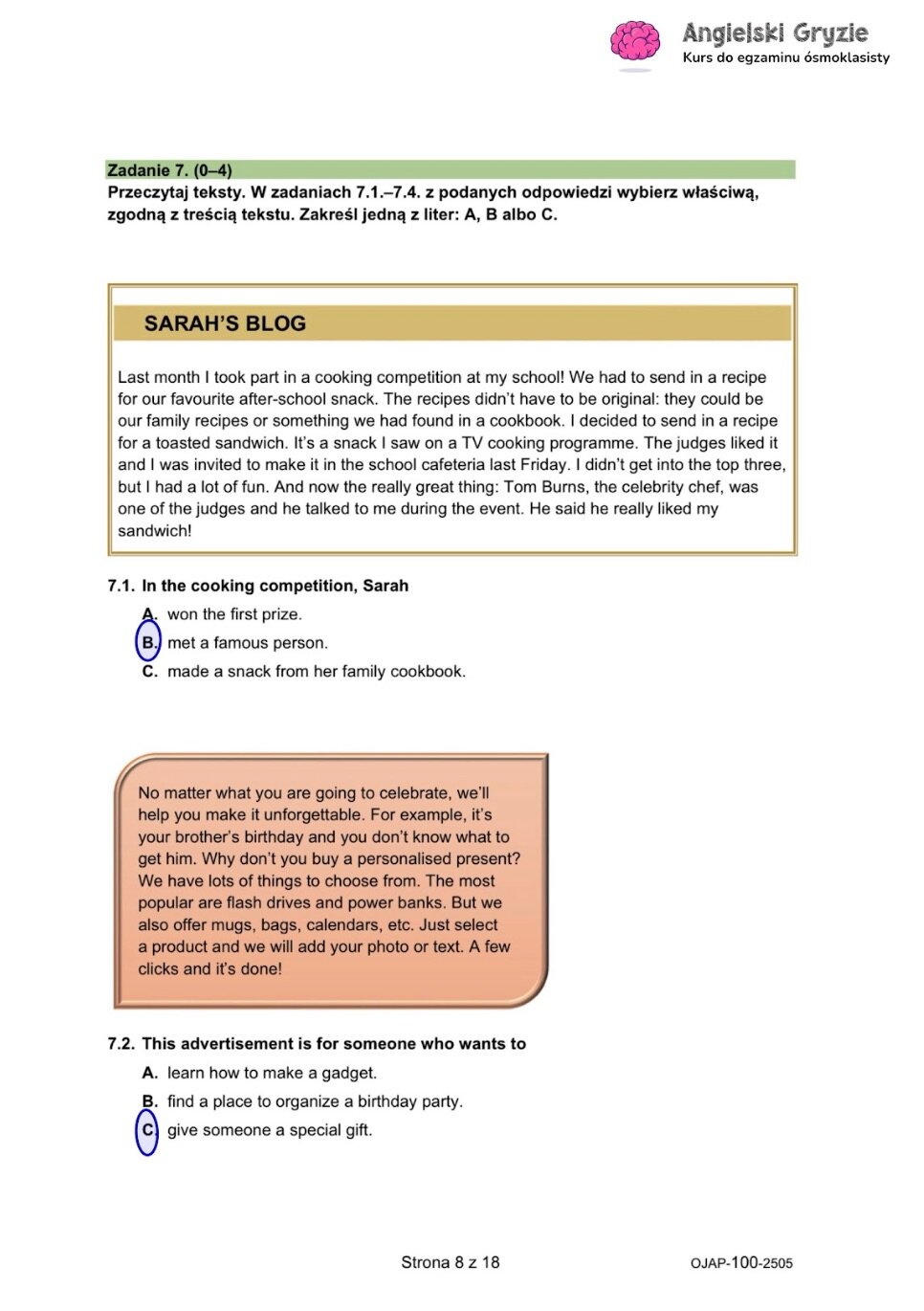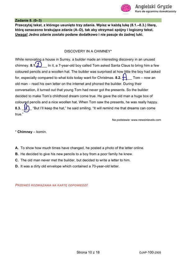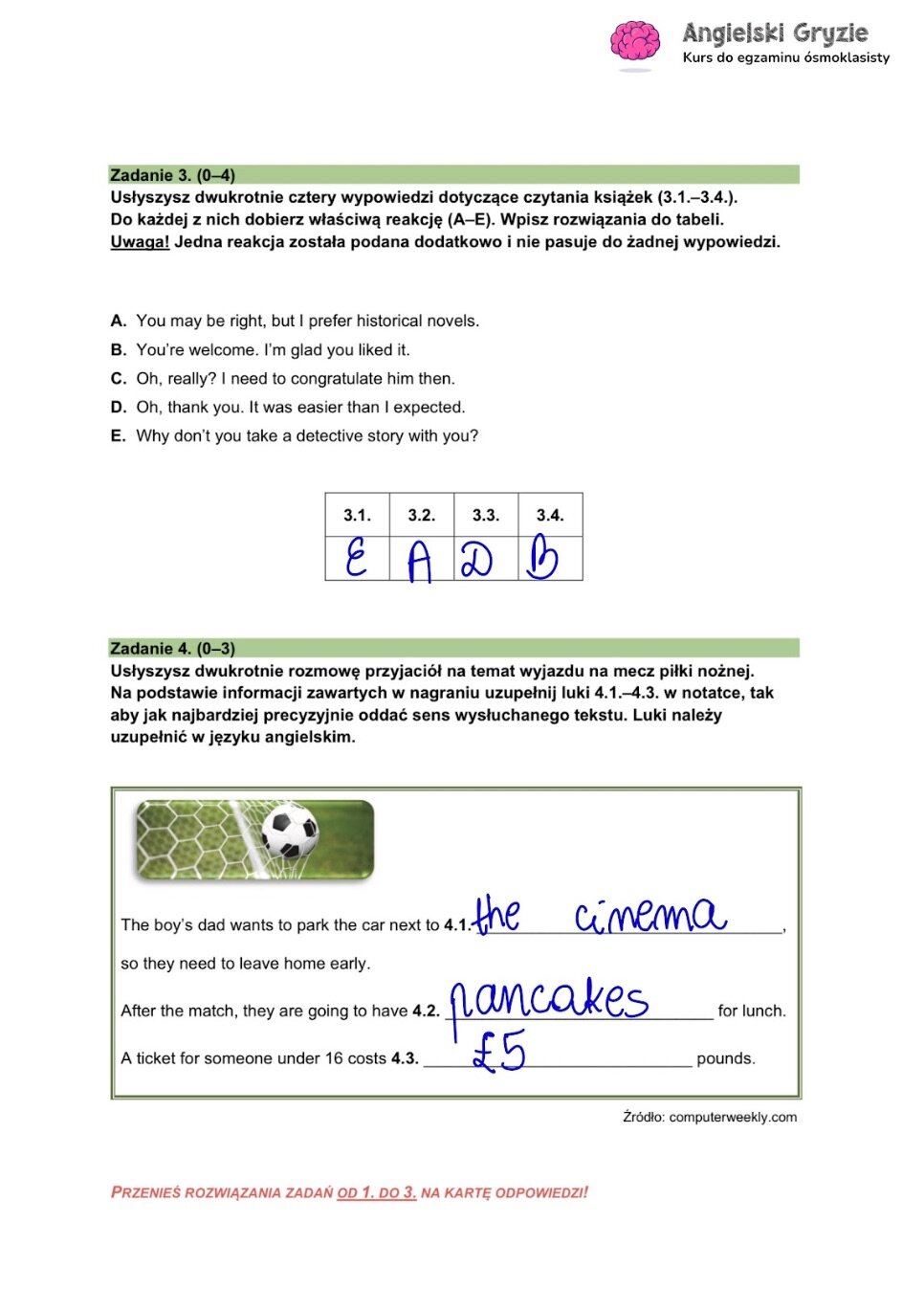 Egzamin ósmoklasisty z języka angielskiego już za Wami! 😮💨 Jeśli chcecie szybko sprawdzić swoje odpowiedzi, to mamy dla Was dobrą wiadomość. Rozwiązania wszystkich zadań z języka angielskiego znajdziecie poniżej!