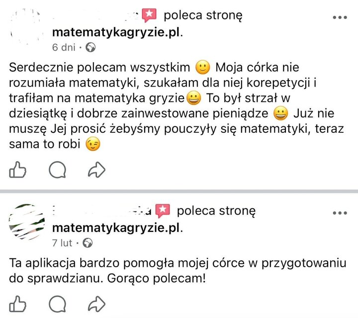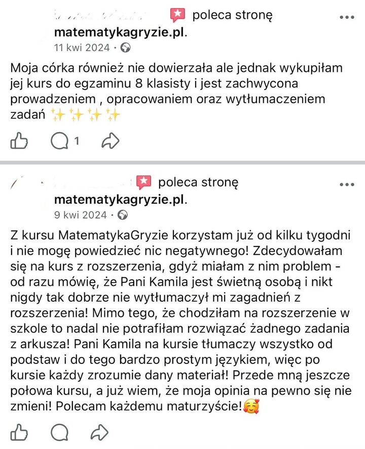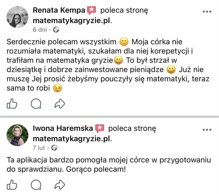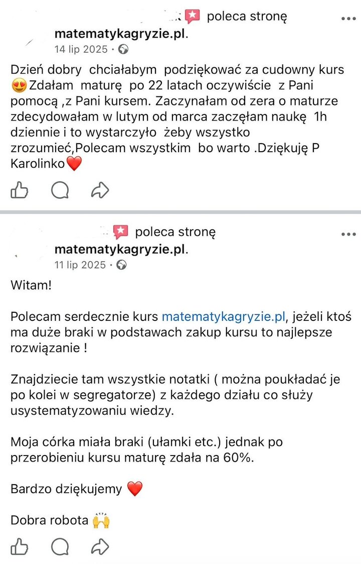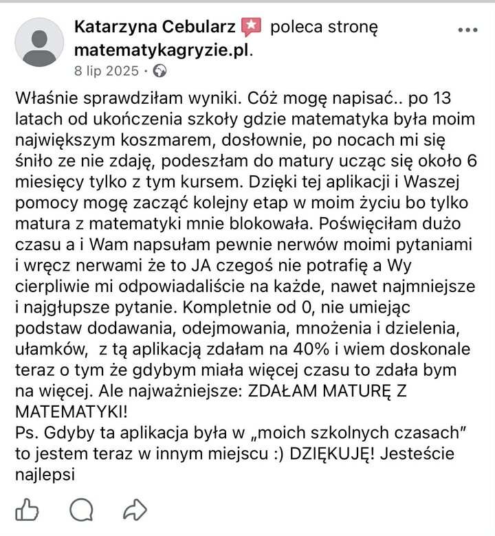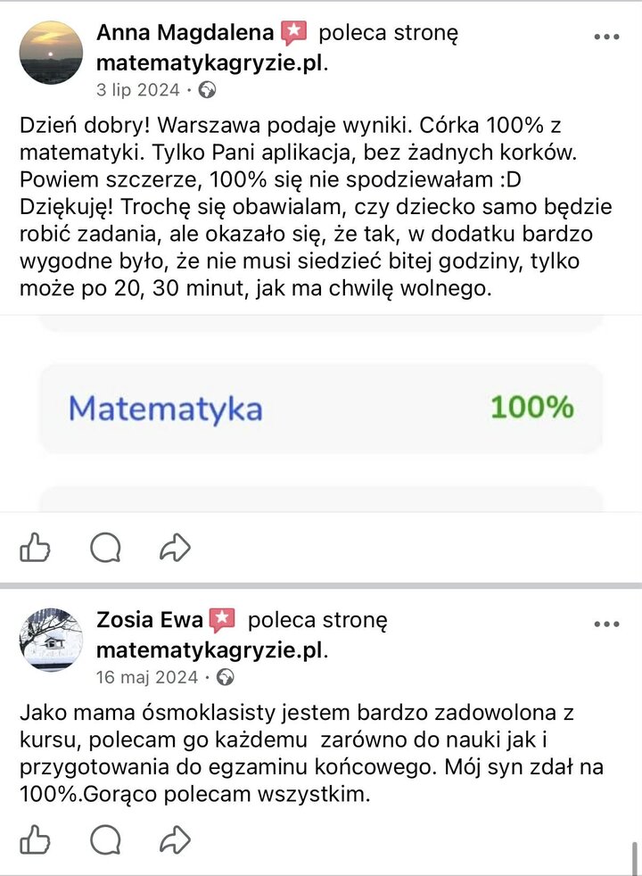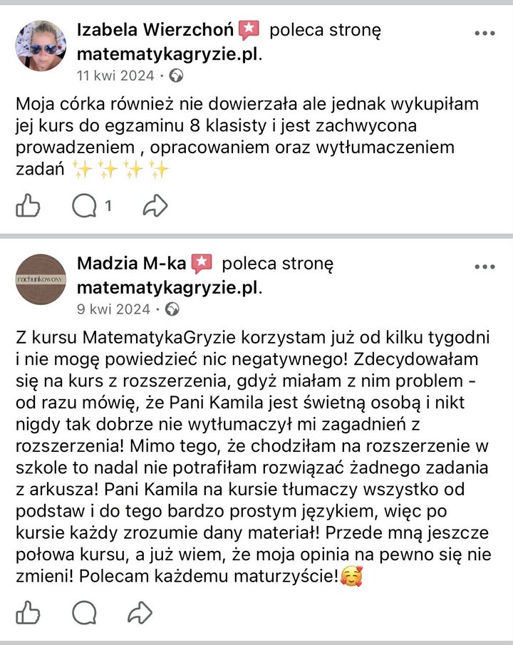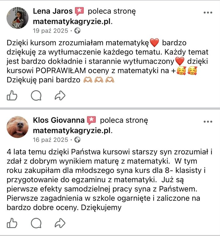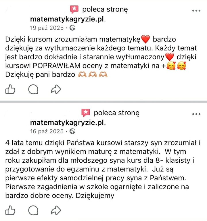 Prowadzę Facebook i Instagram o nazwie Matematyka Gryzie. Można sprawdzić tam w jaki sposób uczę: