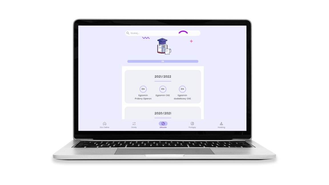 Oprócz zakładki z działami do nauki w naszym kursie znajduje się również zakładka arkusze, gdzie znajdują się wszystkie arkusze próbne oraz oficjalne z poprzednich lat z rozwiązaniami do każdego z zadań na osobnym filmie.