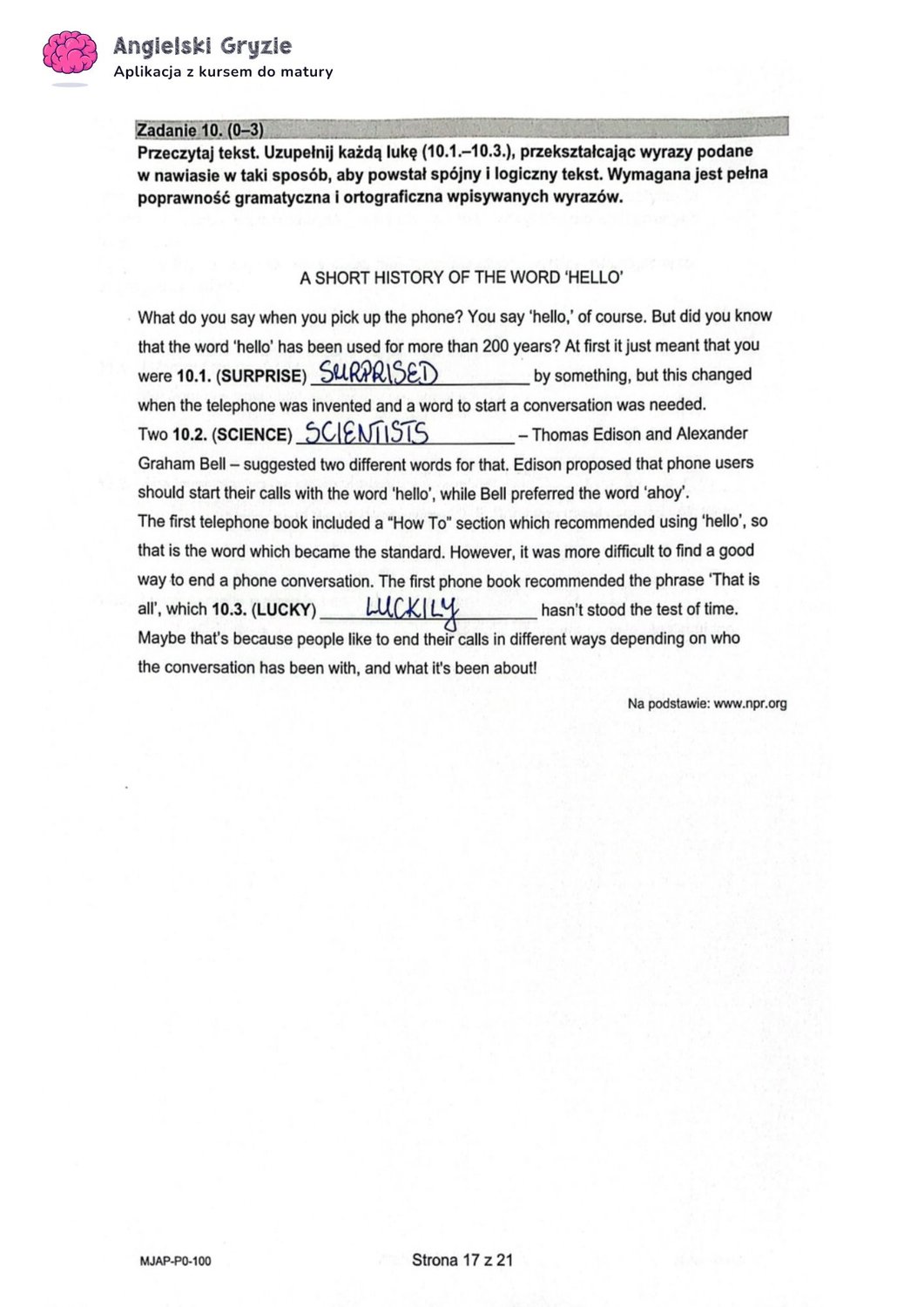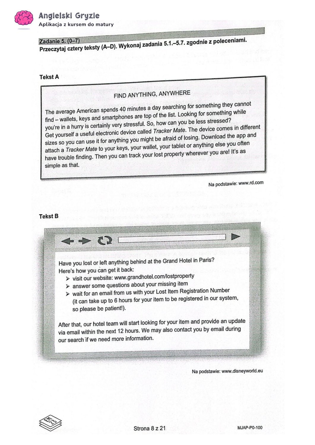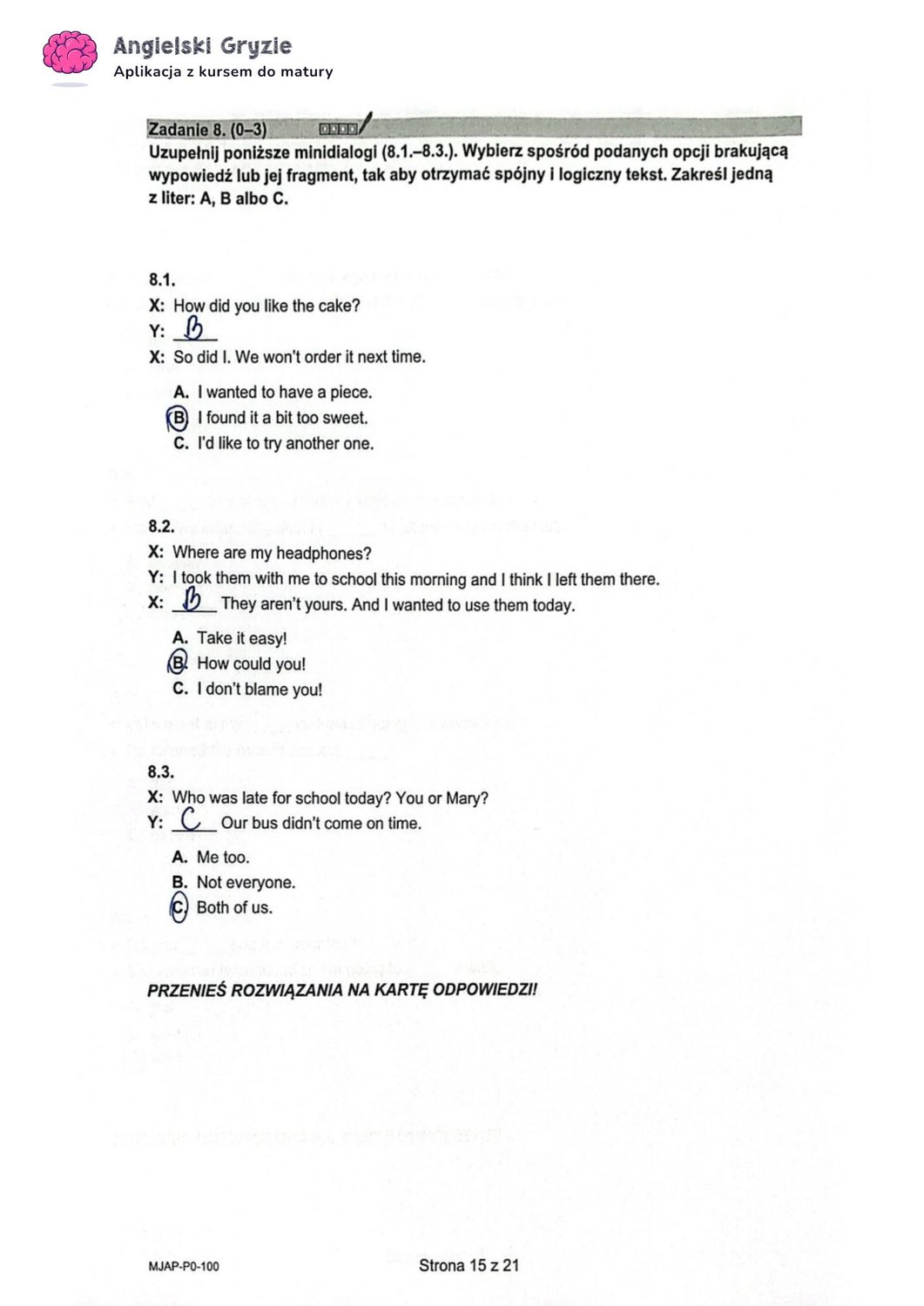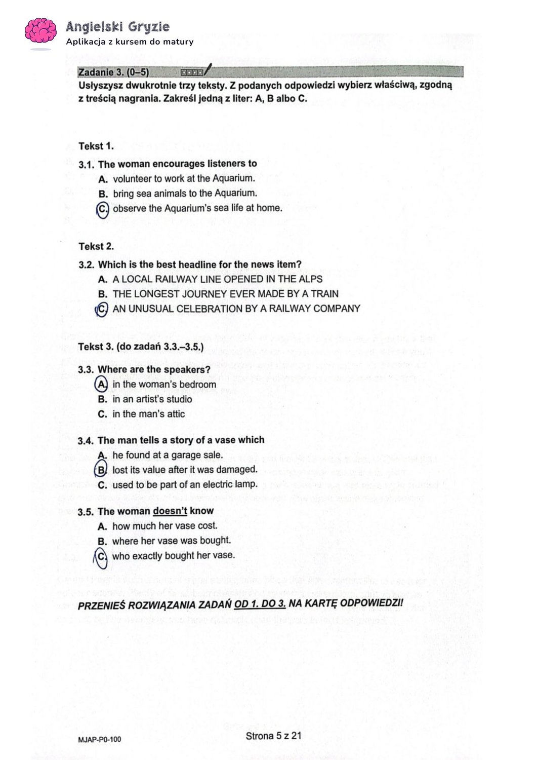 Matura próbna z języka angielskiego do egzaminu dojrzałości 2024 odbyła się 8 grudnia 2023 roku. Wiemy jak ważne jest dla Was porównanie swoich odpowiedzi i sprawdzenie ich poprawności. Poniżej znajdziecie pełne rozwiązania do zadań, które zostały Wam przedstawione.