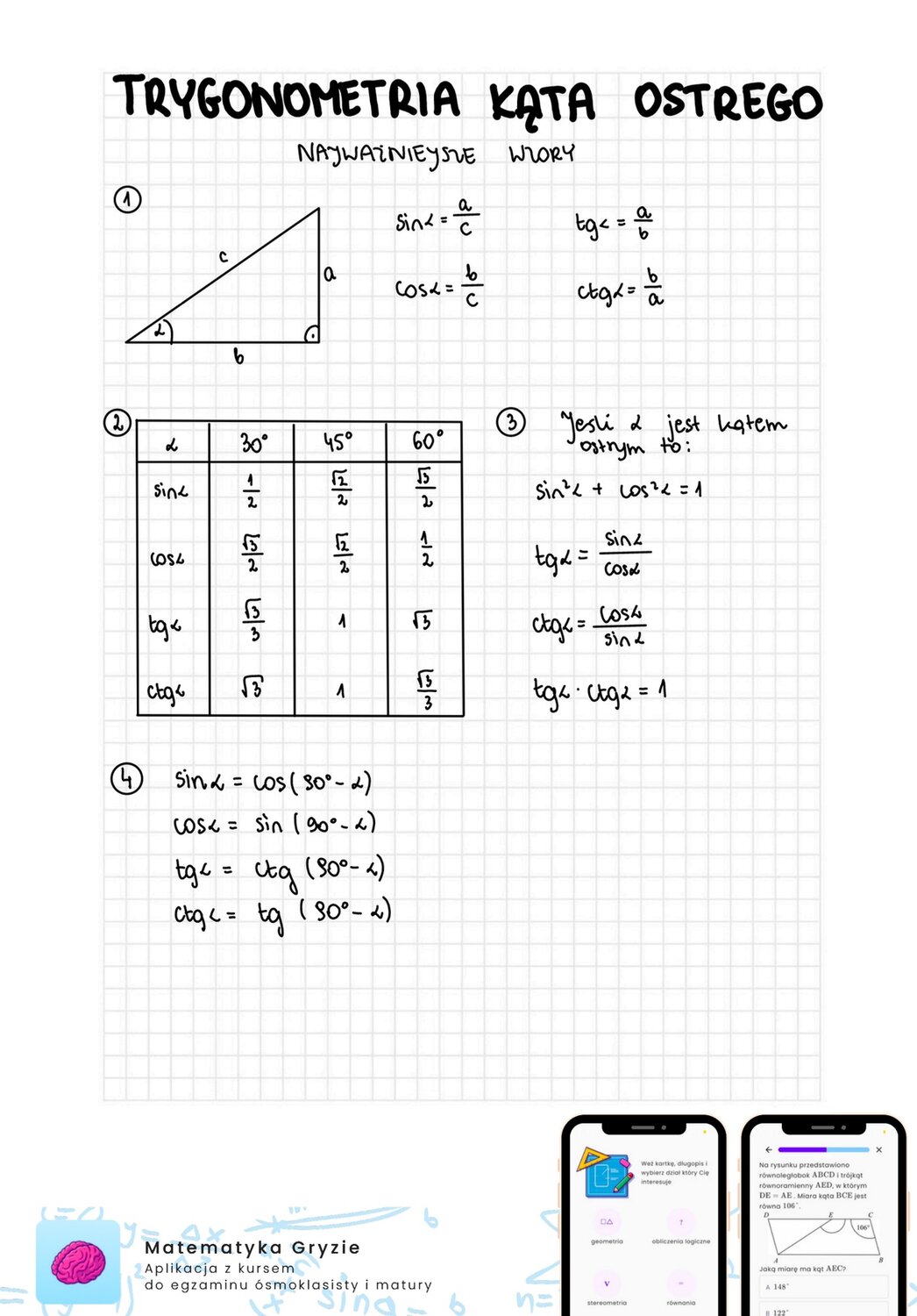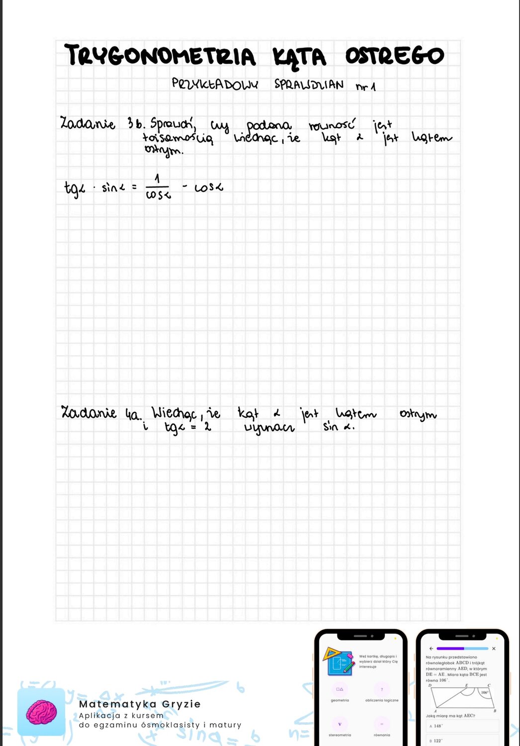 Trygonometria kąta ostrego - przykładowy sprawdzian cz. 4