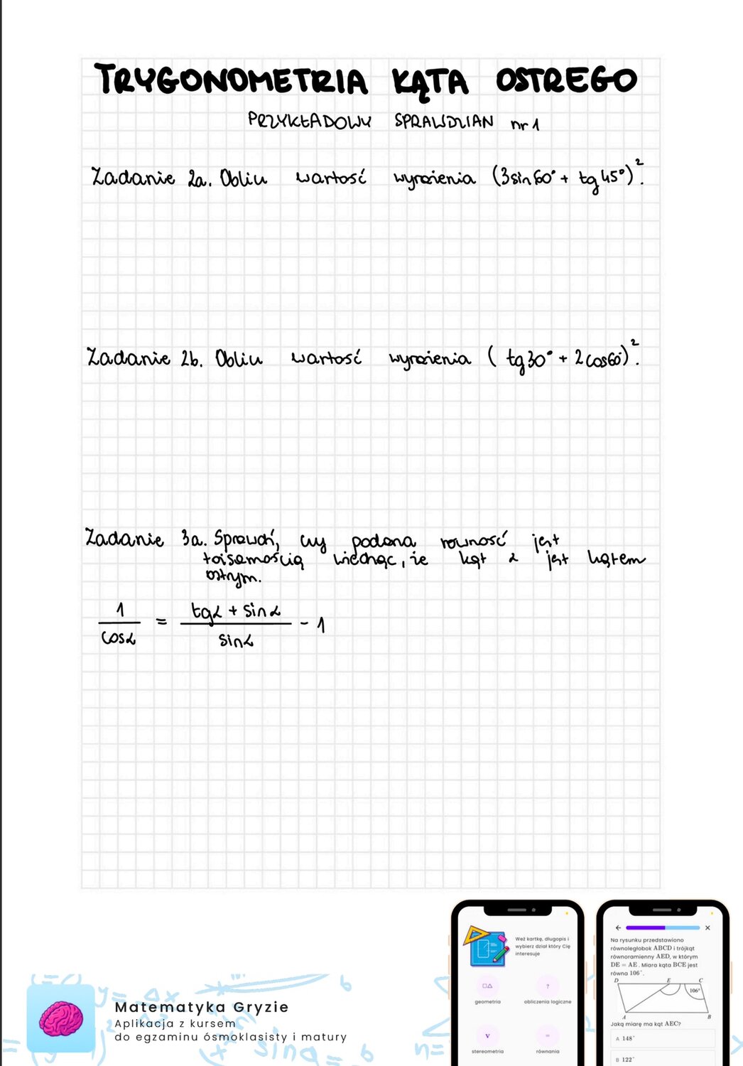 Trygonometria kąta ostrego - przykładowy sprawdzian cz. 3