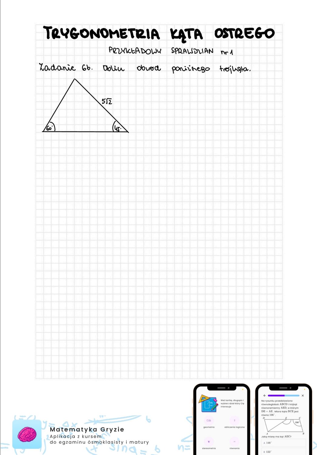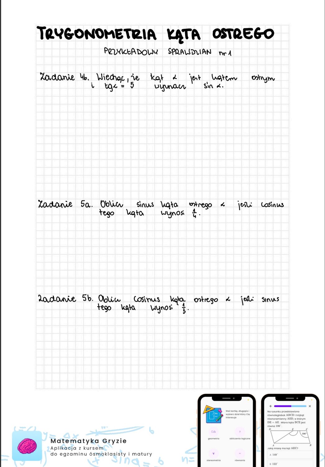 Trygonometria kąta ostrego - przykładowy sprawdzian cz. 5