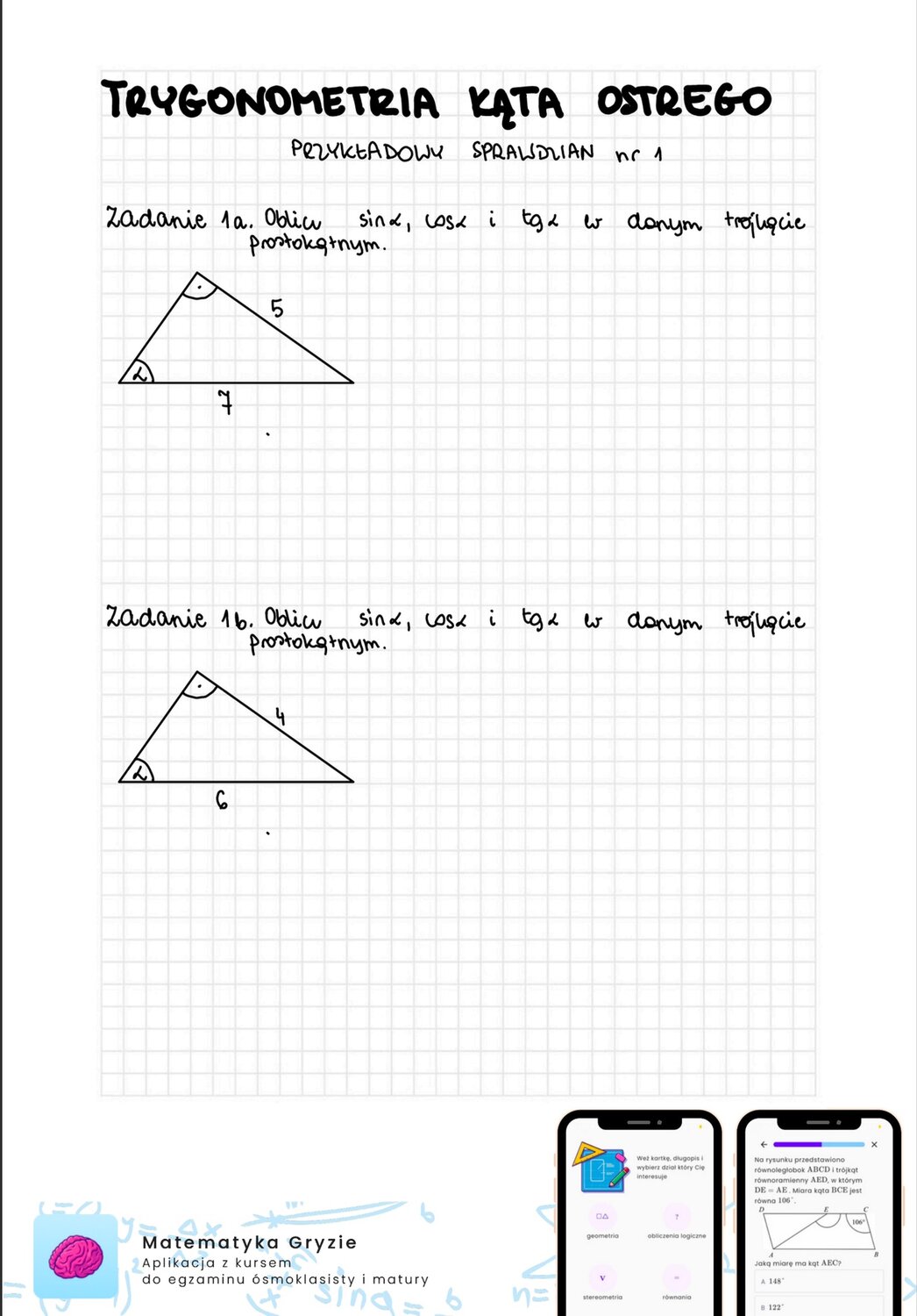Trygonometria kąta ostrego - przykładowy sprawdzian cz. 1