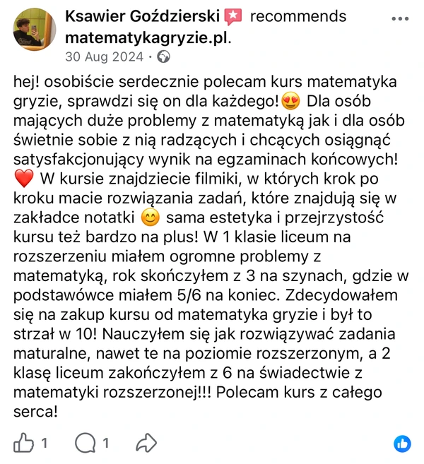Pomagam już ponad 40 tys. uczniów zrozumieć matematykę i osiągać wymarzone wyniki na egzaminach.